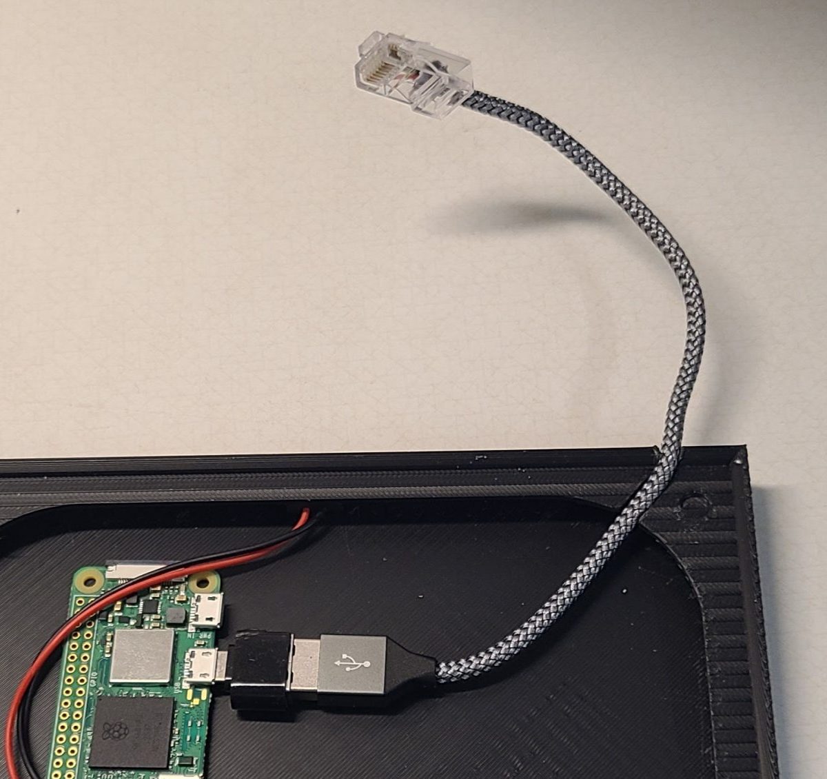 I designed and 3D printed a base to hide the Raspberry Pi Zero 2 W and added a USB C female connector w/ wires and soldered them onto the Pi. (3D file for CP48.)