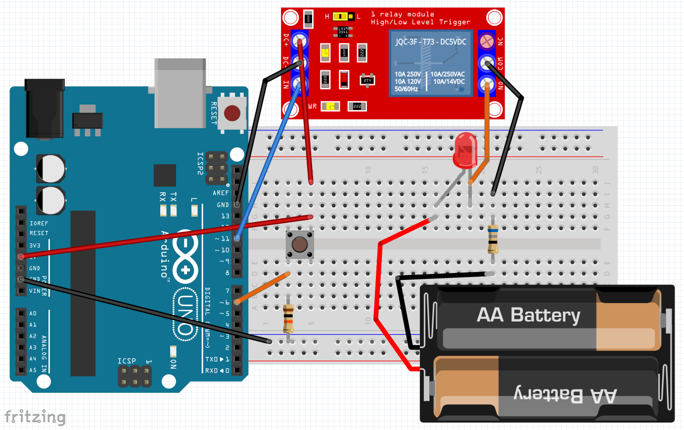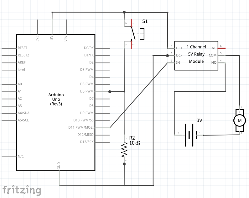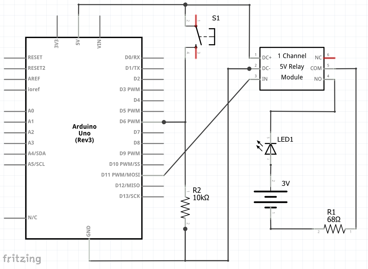 Relay w/ toggle button – schematic diagram, wiring