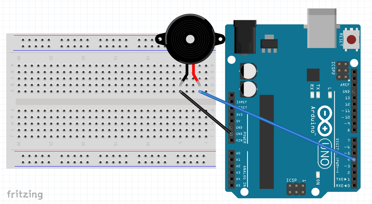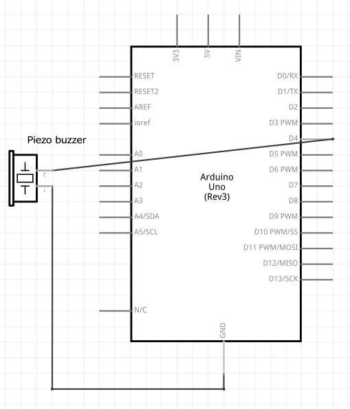 Piezo buzzer – schematic diagram, wiring and code