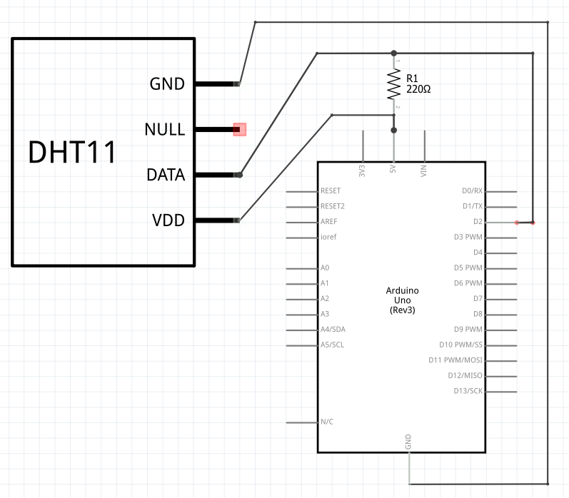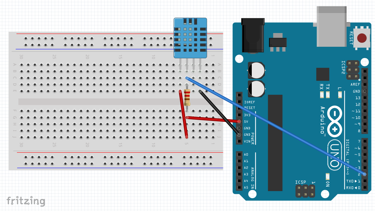 Temperature & Humidity Sensor – schematic diagram, wiring and code